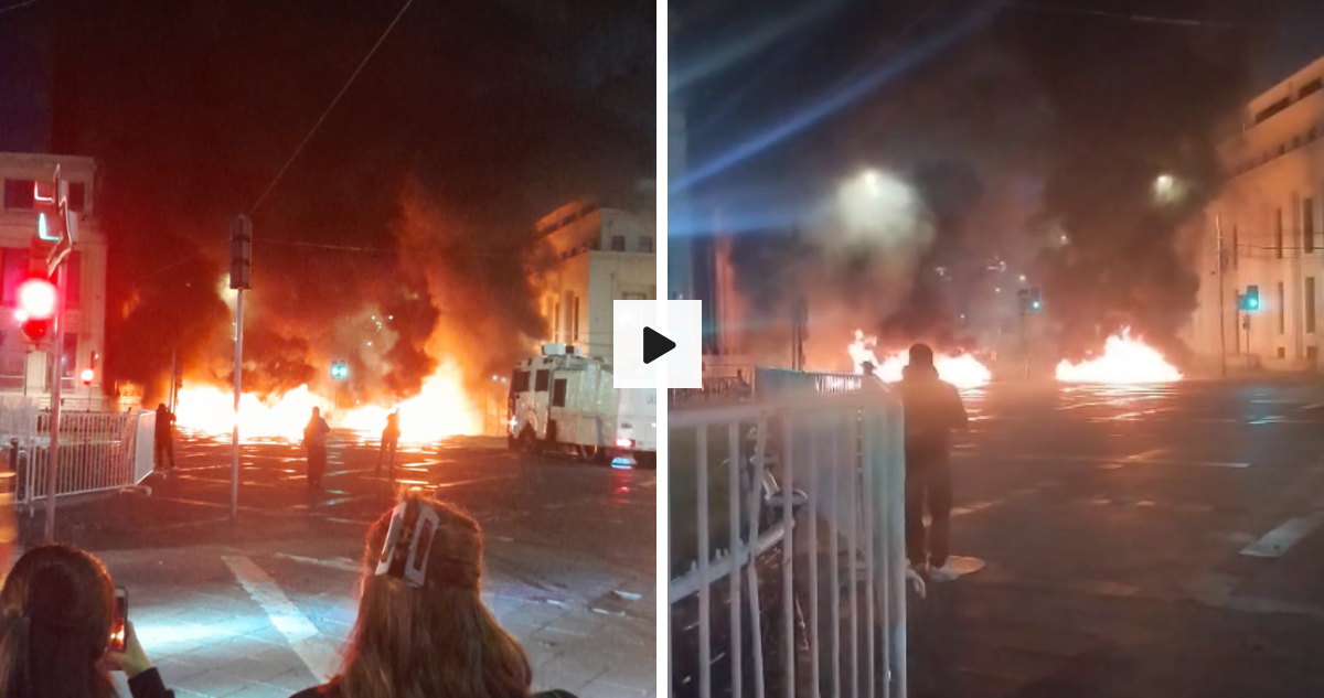 Estibadores de Valparaíso instalaron barricadas incendiarias cerca de Plaza Sotomayor en medio de las negociaciones con la empresa Report de TPV.