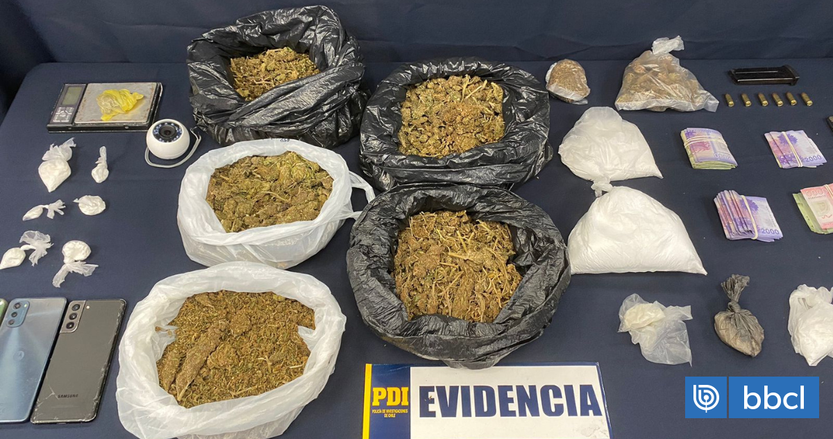 En el operativo, en que participaron más de una decena de efectivos de la PDI, no hubo resistencia de parte de los detenidos y el proceso de pesquisa y búsqueda arrojó la incautación de drogas de diverso tipo y armamento.
