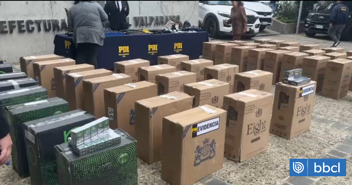 11 personas quedaron en prisión preventiva por liderar banda de contrabando de cigarrillos en Quillota. Entre los detenidos, un argentino y un funcionario de Aduanas. El cargamento valuado en 3000 millones ingresó desde Arica a Valparaíso en camiones. Funcionario de Aduanas de Iquique facilitaba ingreso omitiendo controles. Acusado de cohecho y asociación ilícita. Organización usaba empresas fachada para lavado de activos. Recuperaron 2200 millones, cajetillas, inmuebles, cuentas bancarias congeladas y armas.