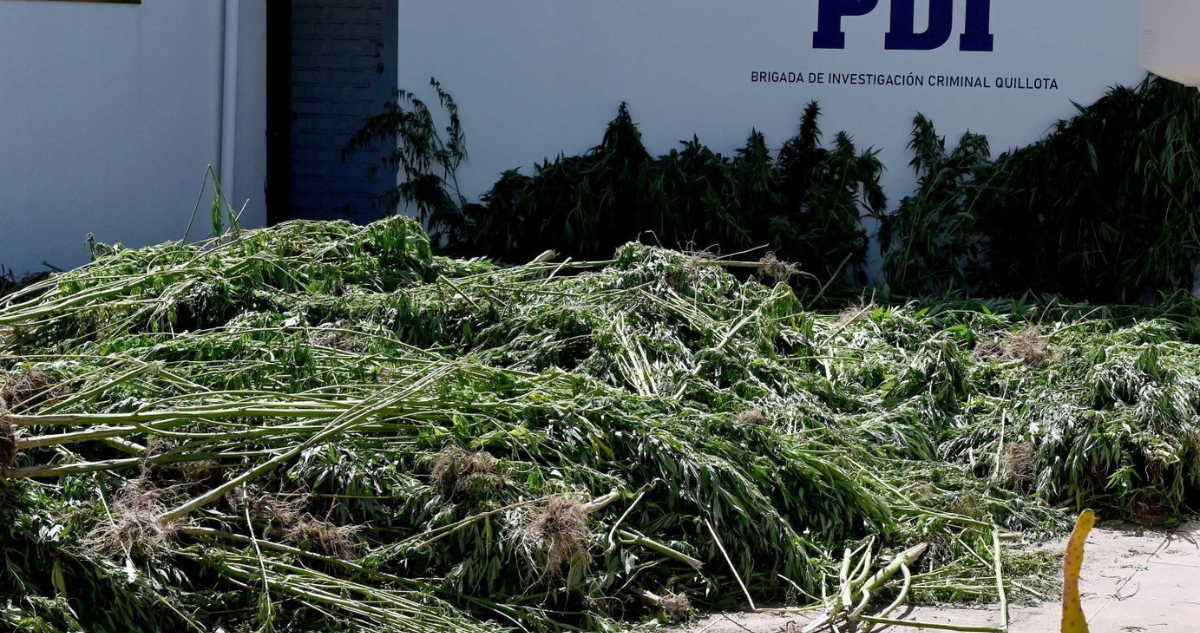 La PDI incautó cerca de 900 plantas de marihuana y desbarató dos invernaderos en Quillota, Región de Valparaíso, luego de recibir una denuncia ciudadana. Tras un amplio operativo en la caletera de la Ruta 60 CH, los detectives de la Bicrim de la PDI encontraron las plantaciones en invernaderos equipados con sistema de riego automático. Se decomisaron las plantas, sacos de droga en proceso de secado y se estima que el valor de la operación supera los $600 millones.