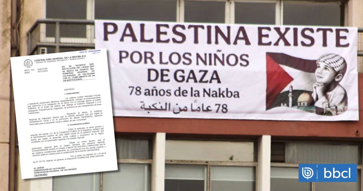 Todo partió con una consulta. Dos personas acudieron a la Contraloría para preguntar si era correcto que en el frontis del edificio donde funciona el Gobierno Regional de Valparaíso se instalara un lienzo con un mensaje sobre Palestina, acción ocurrida en 2025.
