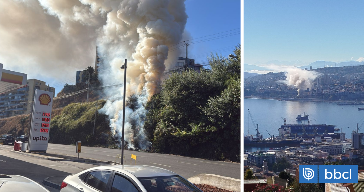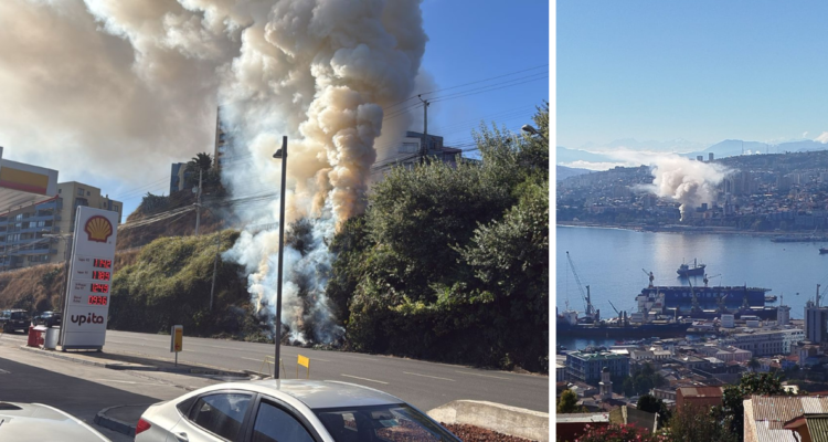 Un incendio de interfaz forestal-urbana afecta a la zona de la pasarela Yolanda I con avenida España en Valparaíso, generando una gran columna de humo visible desde varios puntos de la ciudad, lo que indica su rápida propagación en una zona cercana a vegetación y viviendas. Al menos dos carros de bomberos trabajan en el lugar para controlar y contener el fuego y evitar su expansión hacia las áreas habitadas. Debido al riesgo de propagación por factores como el viento y material combustible, se mantiene un monitoreo constante.