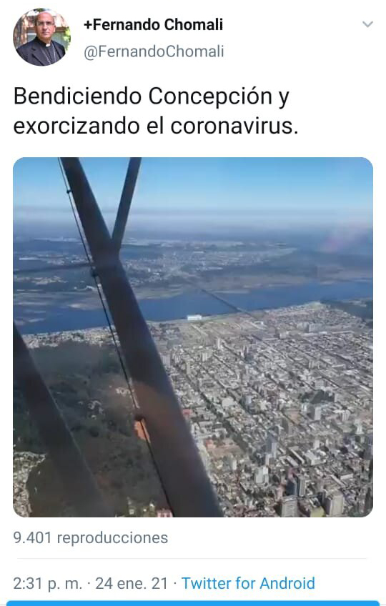 "Exorcizando el coronavirus": obispo Chomalí sobrevoló Concepción para bendecir la ciudad