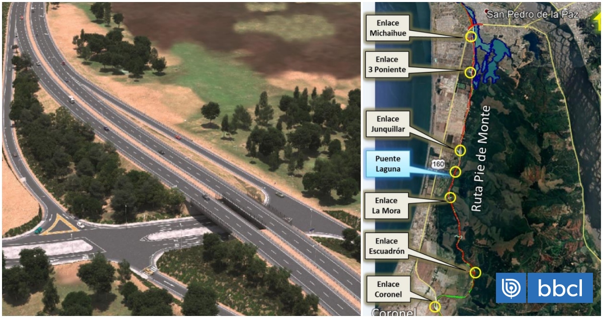 La obra considera un trazado por el borde de los cerros, al oriente de la Ruta 160, que conectará por el norte con la Concesión Vial Puente Industrial, que se encuentra en etapa de construcción, y por el sur con la Concesión Ruta 160, Tramo Coronel – Tres Pinos.