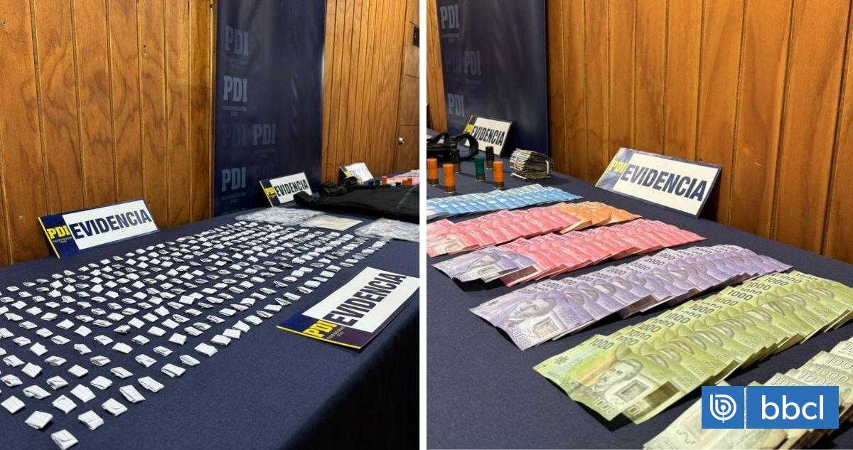 De esta manera, la PDI logró sacar de circulación 2.100 dosis de cocaína base, más de 1.400.000 millones de pesos en efectivo, cartuchos calibre 12 y 9 mm, y un chaleco anticorte.
