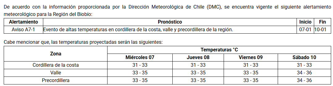 Este miércoles, la región del Bío Bío estará nuevamente en Alerta Roja por calor extremo, medida que se toma a raíz de una nueva alerta emitida por la Dirección Meteorológica de Chile.