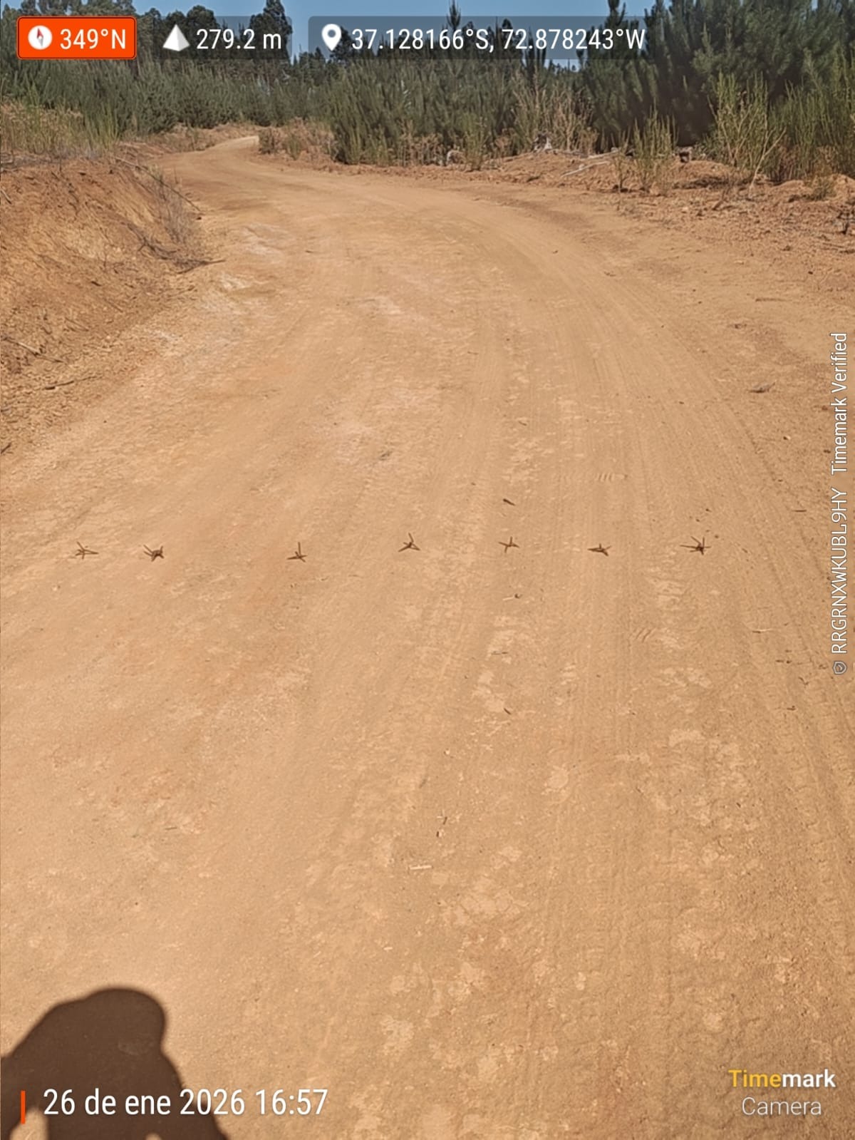 En Hualqui, sector Talcamávida, dos patrulleros detectan miguelitos en camino de predio Pinares de Arauco, impidiendo acceso a área con alto riesgo de incendios. Personal prioriza seguridad y no continúa desplazamiento. Patrulleros de empresas forestales previenen incendios con disuasión y detección temprana.