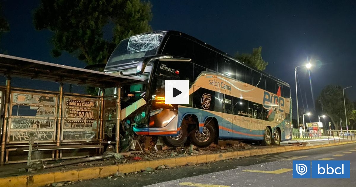 Un bus interprovincial de Eme Bus protagonizó un accidente en Talcahuano al chocar contra barreras de contención y un paradero en la esquina de calle Colón con Maestro Alarcón. Dos personas resultaron lesionadas y fueron trasladadas al hospital. Una grúa trabaja en el retiro del bus incrustado, causando congestión vehicular en la zona.