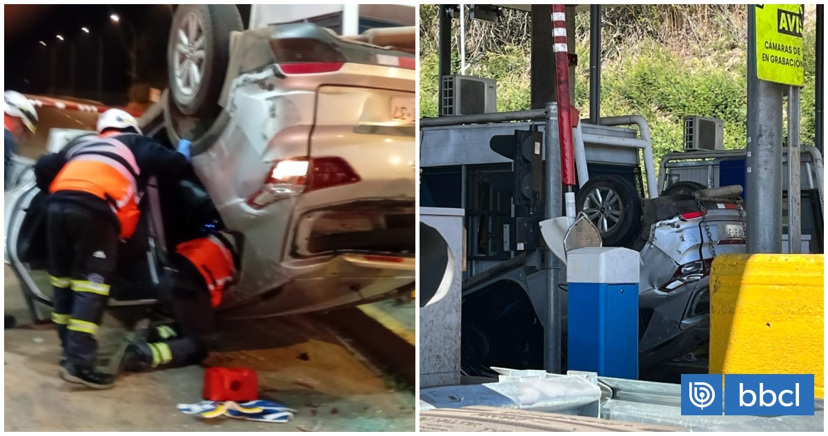 Este hecho se registró la madrugada del domingo, cuando un vehículo Hyundai ingresó a alta velocidad a una de las plazas del peaje Agua Amarilla, impactó a un amortiguador y chocó a otro móvil que estaba en el lugar para finalmente terminar volcado.