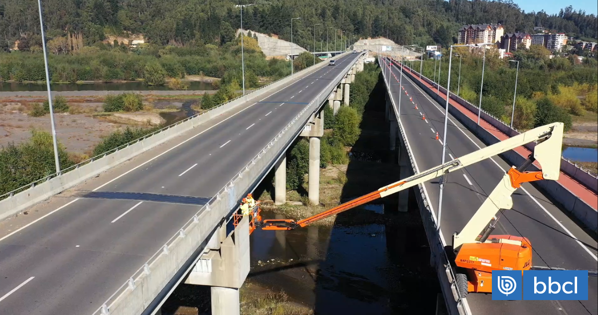 Comenzó la instalación de los sensores que permitirán el monitoreo permanente del Puente Bicentenario, uno de los viaductos que pasa sobre el río Bío Bío.