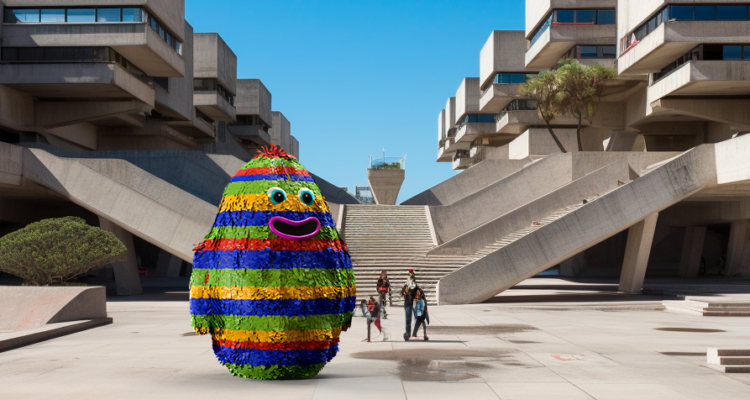 Felicidad y diversión, es lo que transmite la piñata gigante de 5 metros de alto y de 2.000 kilos. Esta amigable figura, con una sonrisa contagiosa y ojos bien abiertos, está revestida con telas multicolores reutilizadas. La intervención nos regalan una explosión de color, alegría y conciencia, recordándonos que la belleza y la diversión pueden estar al alcance de todos.