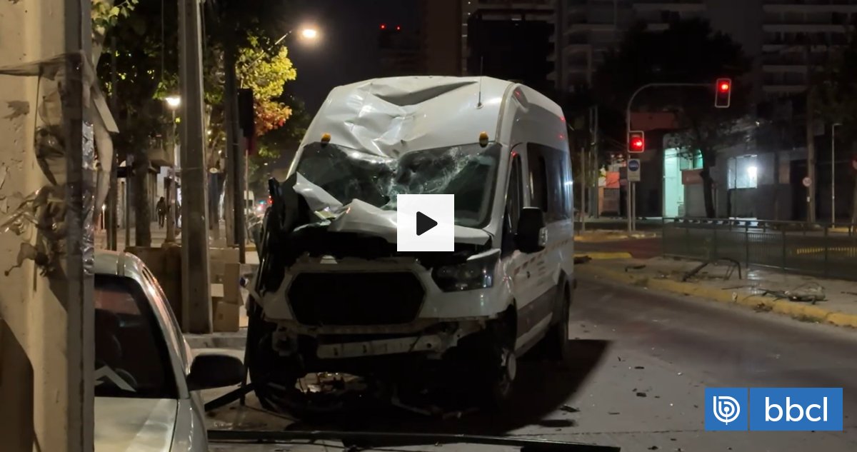 Un furgón protagonizó un accidente en Santiago al arrasar con parte del mobiliario público en Vicuña Mackenna altura Santa Elvira, alrededor de las 2:00 de la madrugada. El vehículo de transporte de pasajeros impactó un poste, un semáforo y las rejas del bandejón central, y su conductor se dio a la fuga, dejando dudas sobre si manejaba bajo la influencia de sustancias. Afortunadamente, no hubo heridos y Carabineros entregará los antecedentes al Juzgado de Policía Local, ya que no se logró identificar a la empresa responsable del furgón.