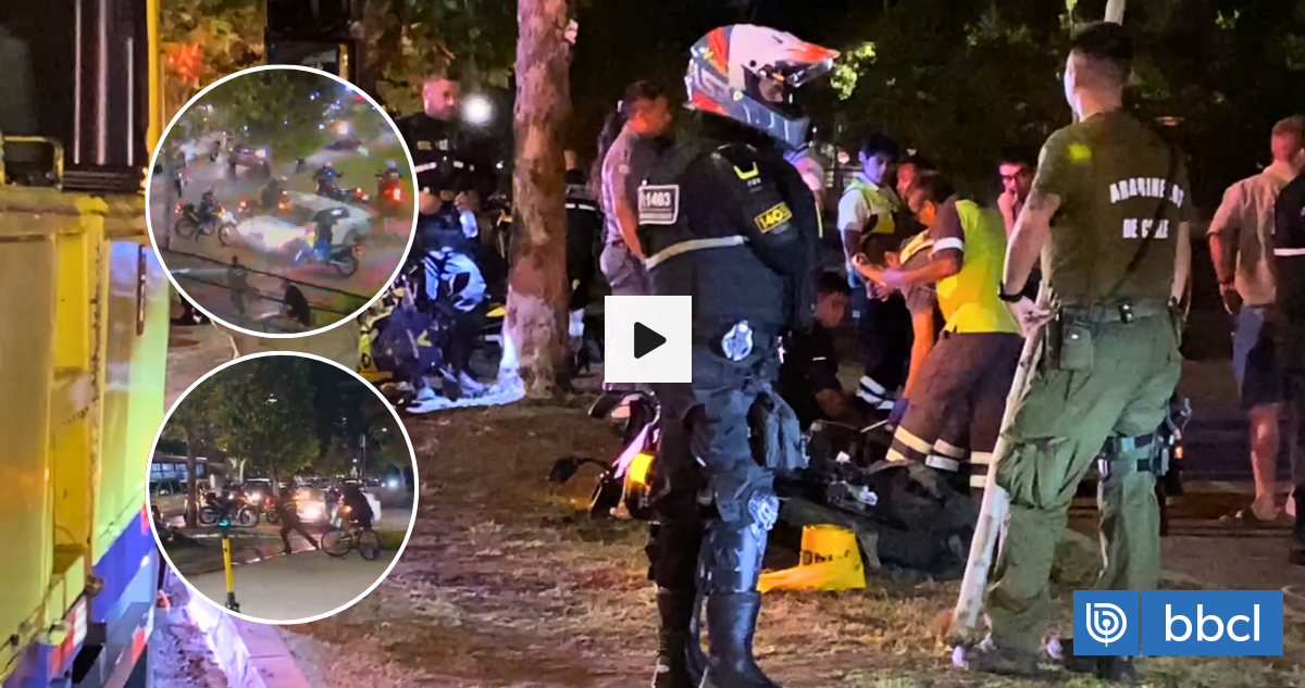 Videos de cámaras de seguridad y de testigos revelan el momento exacto en que un automóvil blanco, en el que huía un delincuente solitario, atropelló de forma brutal a cuatro funcionarios municipales de Vitacura durante un operativo policial en Américo Vespucio Norte con Francisco de Aguirre.