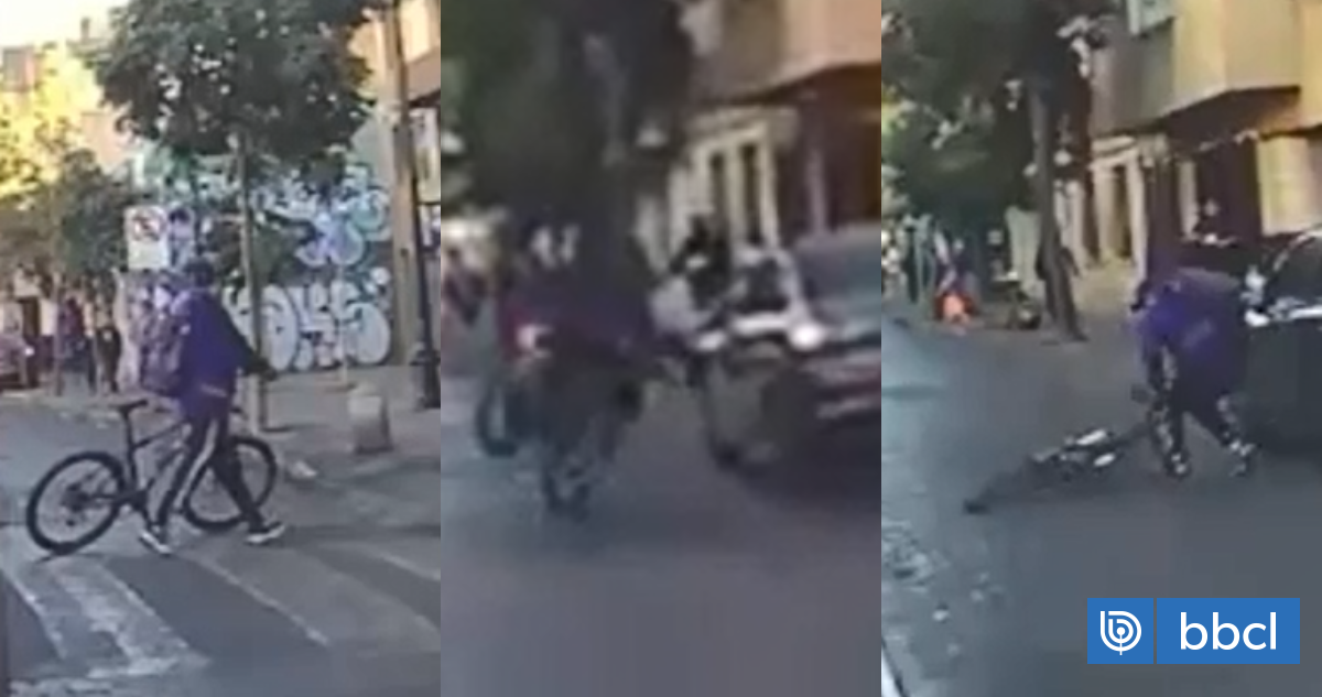 Un ciclista protagonizó un particular accidente en pleno centro de Santiago tras discutir con un automovilista, perdiendo el control de su bicicleta, volcándose y chocando contra otro vehículo estacionado. El incidente, captado por una cámara a la que tuvo acceso BBCL, tuvo lugar en calle Lira entre Curicó y Diagonal Paraguay a las 8:15 horas del 15 de abril. Tras una pelea verbal en la calzada, el ciclista persiguió al vehículo y al intentar estirar el brazo hacia él, cayó sobre un auto estacionado.