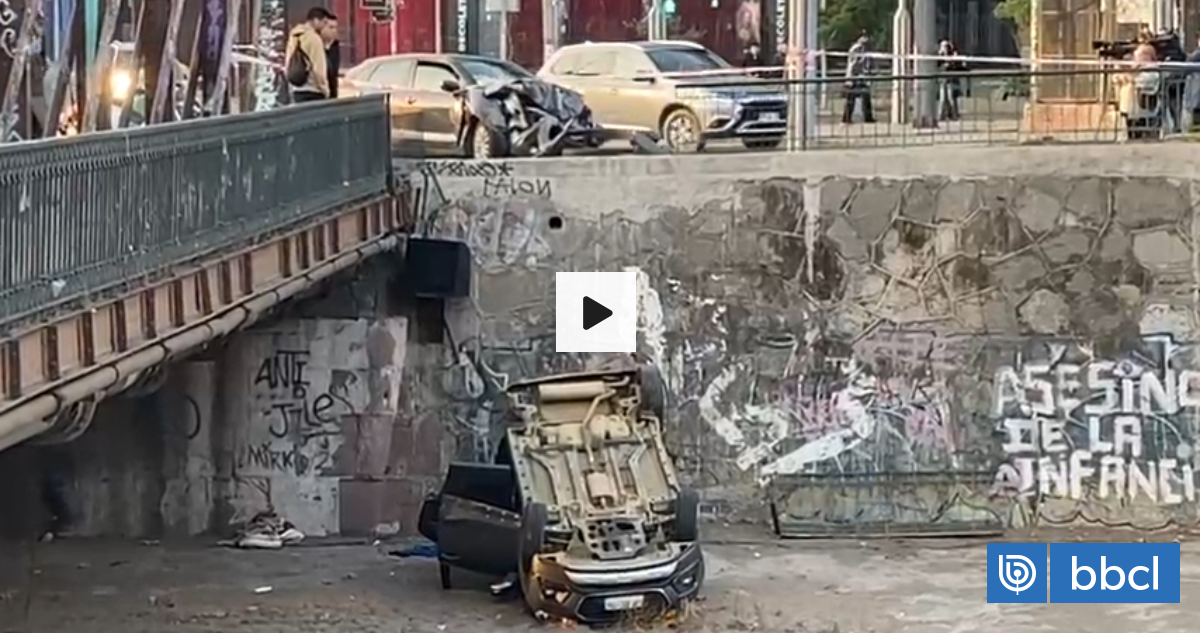 Este jueves se registró un accidente de tránsito entre dos vehículos, donde uno de ellos terminó cayendo hacia el Río Mapocho en Santiago, en la intersección de Avenida Santa María con Purísima.