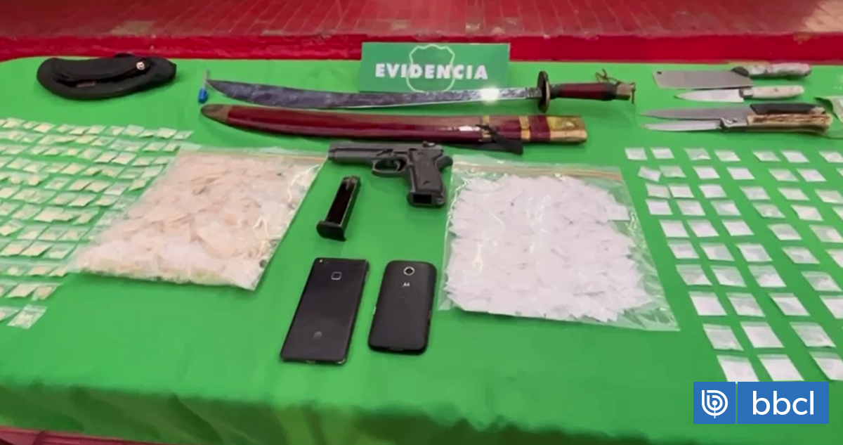 Carabineros ingresó a la casa de uno de los cinco detenidos en el marco de los patrullajes preventivos en Pudahuel, realizados por el funeral de extremo riesgo de un motochorro abatido por funcionarios policiales el lunes pasado en San Bernardo. En el procedimiento se incautó una gran cantidad de droga y diversos objetos. Entre ellos, un machete y un sable.