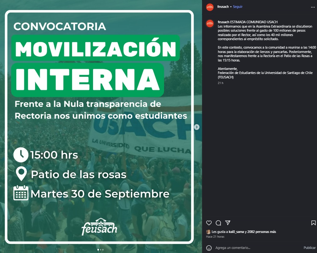 Cabe señalar que la movilización fue precisamente en contra del rector Vidal. Principalmente, la federación estudiantil apunta a un gasto de $100 millones.