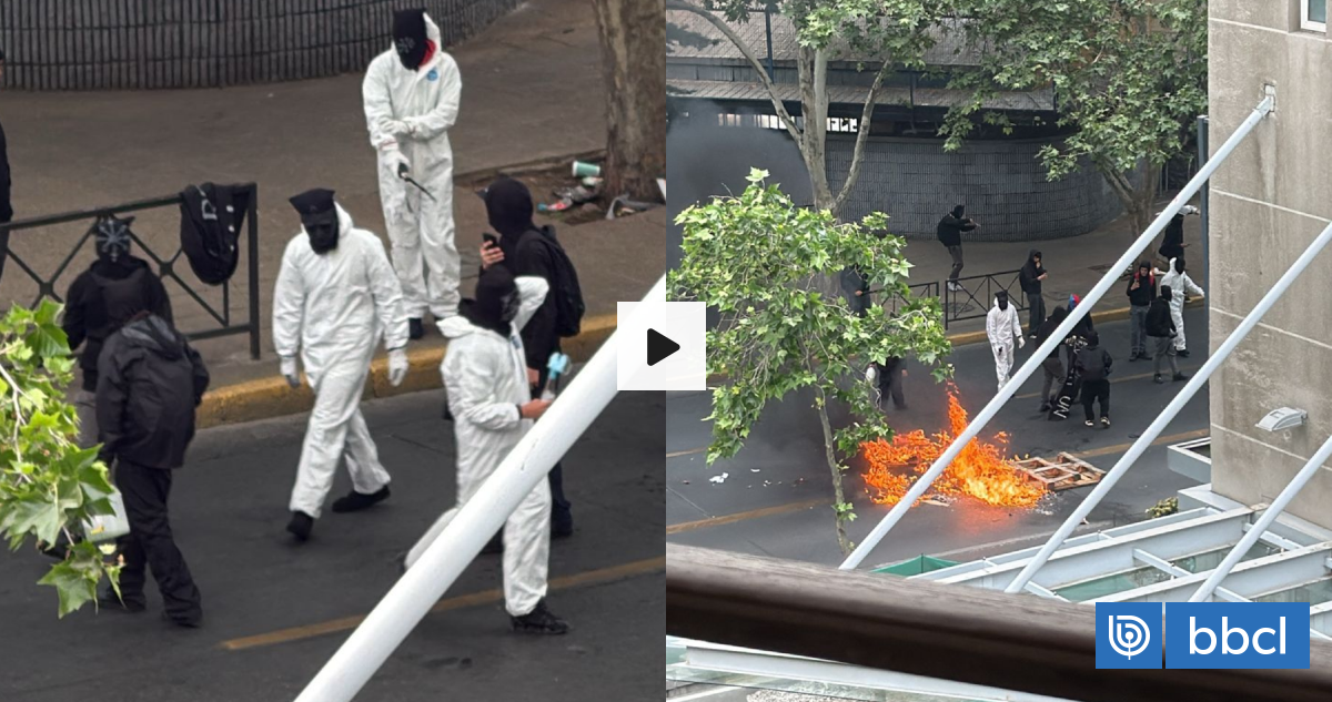 “Hoy día, alrededor de las 9:30 de la mañana, un grupo de estudiantes sale usando overoles blancos, encapuchados, a la vía pública; armaron barricadas por lo que es la línea de (avenida) Providencia y además efectuaron el lanzamiento de bombas Molotov en contra del personal policial“, relató Tabra en diálogo con La Radio.
