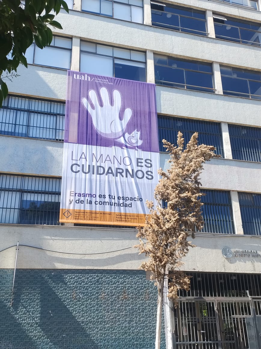 Ante esta situación, que se arrastra hace mucho tiempo, la Universidad Alberto Hurtado instaló lienzos con mensajes que dicen: “La mano es cuidarnos” y “La mano es empatizar“. Asimismo, en los mismos paños se lee: “En Erasmo habitamos todas y todos“.