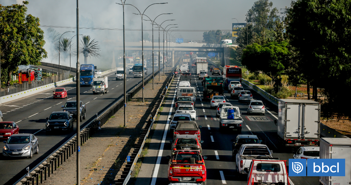 Tras 17 horas de trabajo, reabrirán eje General Velásquez en Renca, afectado por explosión de camión. Dos pistas sur habilitadas. Sociedad Concesionaria Autopista Central retiró camiones y vehículos incendiados. Reemplazaron alrededor de 30 defensas de hormigón dañadas. Calzada norte con pista restringida (8.4 km). No hubo daños importantes.