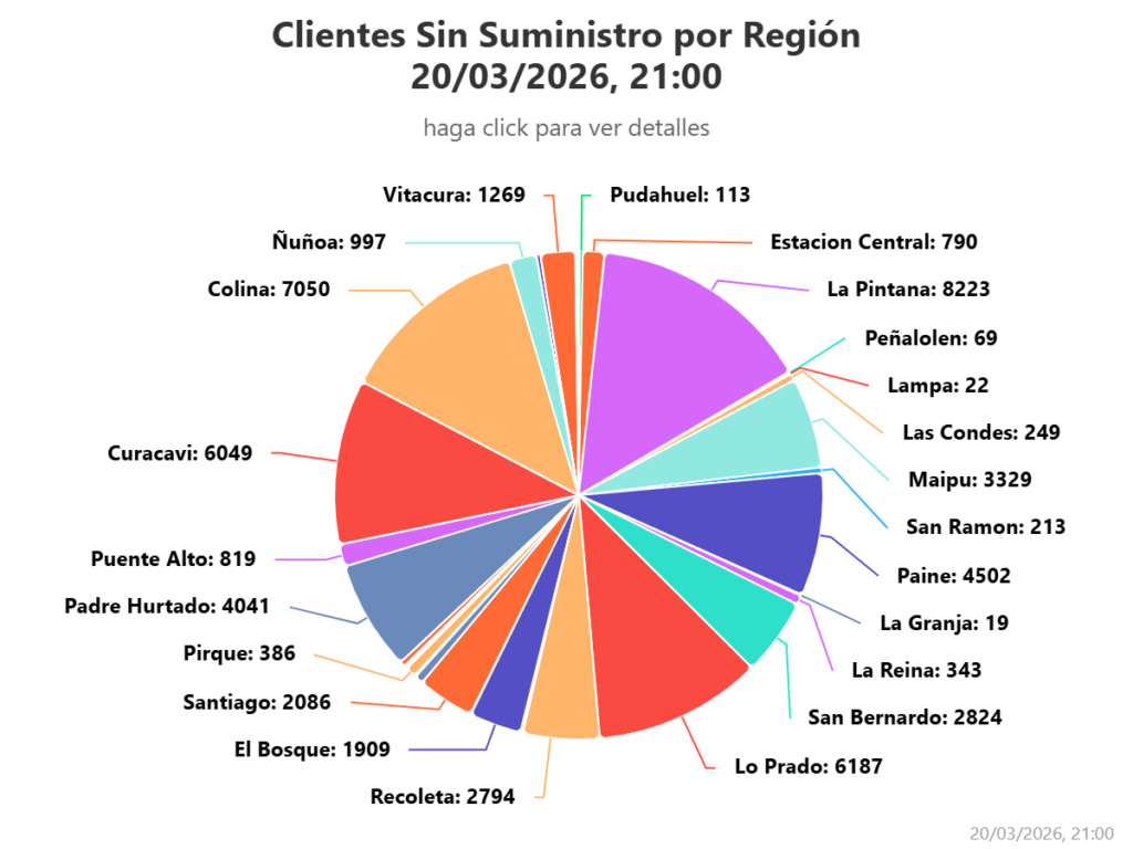 La Superintendencia de Electricidad y Combustibles (SEC) reportó que 55 mil clientes se encuentran actualmente sin suministro eléctrico en la Región Metropolitana. La cifra corresponde a la sumatoria de las zonas afectadas por el paso del sistema frontal pronosticado para las regiones del sur y centro del país.