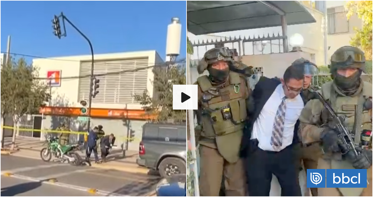 Intento asalto en sucursal de BancoEstado en Providencia terminó con un detenido. Un hombre vestido de terno llegó con un arma de aire comprimido a la sucursal en calle Salvador esquina Quebec, frente al Hospital del Salvador, amenazó al guardia y entró al banco. No está claro si logró robar, pero escapó a pie y fue detenido por la policía. Se incautó el arma, gas pimienta y una granada simulada. Solo había trabajadores en el momento.