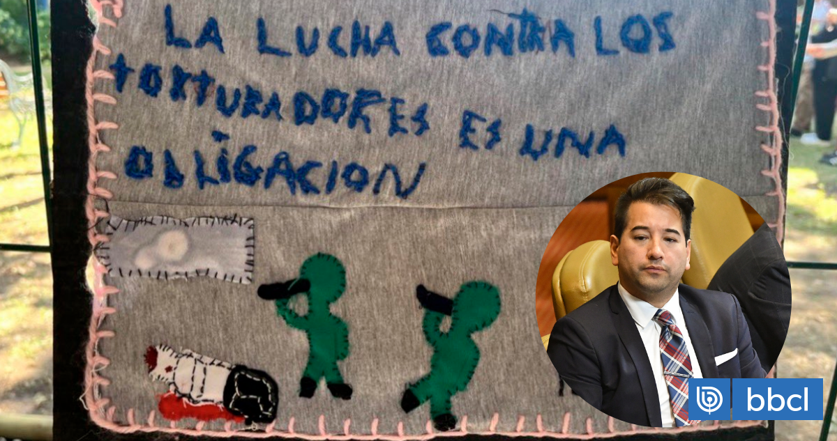 El escrito señala que “la lucha contra los torturadores es una obligación” y está acompañado de figuras en la parte inferior, generando la reacción del parlamentario.