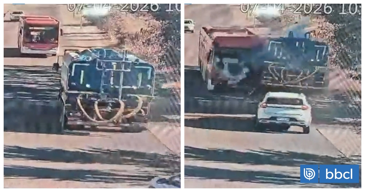 Un video revela el instante preciso de la colisión frontal entre un bus Red y un camión aljibe en Pudahuel, donde un pasajero perdió la vida y otros cinco resultaron heridos, además de los conductores. El bus invadió el carril contrario, chocando de frente contra el camión que intentaba evitar el impacto. Se sospecha que el volante del bus se trabó, aunque la SIAT aún no confirma esta versión.