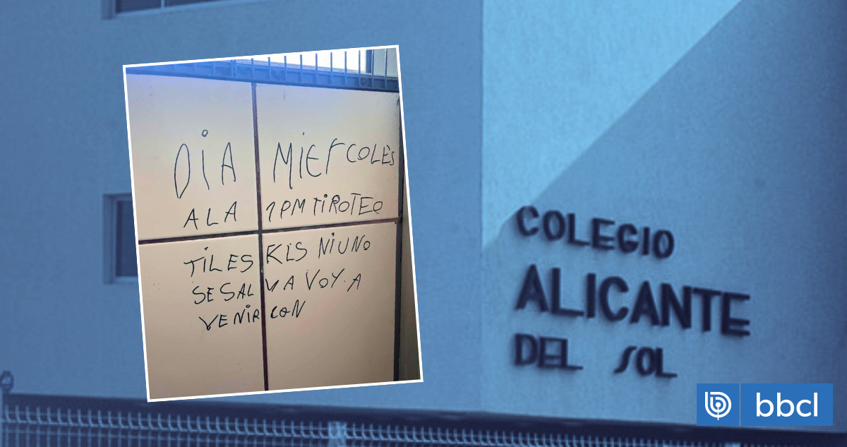 Un mensaje encontrado presumiblemente en los baños del Colegio Alicante del Sol de Puente Alto encendió las alertas entre los padres y apoderados. La amenaza contiene una advertencia explícita. “Día miércoles a la 1 PM tiroteo jiles kl. Ni uno se salva, voy a venir con (sic)”, señala el texto que circuló entre la comunidad escolar. El registro fotográfico de la amenaza fue compartido por una lectora de BioBioChile y apoderada del citado establecimiento.