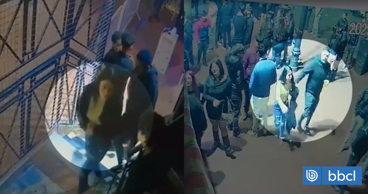 Según los videos revelados por Chilevisión, a la salida del recinto (4:25 horas), la víctima muestra una conducta errática mientras es tomada del brazo por Beltrán.