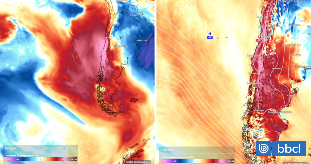 Según el reporte de la meteoróloga de Meteored, Viviana Urbina, “los impactos de esta masa cálida se sentirán fuertemente sobre la zona central de Chile, donde la tarde del sábado podría registrar entre 10 a 12 °C por sobre el promedio para la época”.