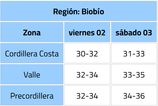 La Dirección Meteorológica de Chile (DMC) emitió un aviso meteorológico por un evento de altas temperaturas, que afectará desde la región del Maule hasta el Bío Bío, con máximas que rondarán los 36° C.