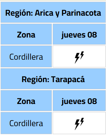 En el norte, se publicó el aviso para las regiones de Arica y Parinacota y Tarapacá desde la tarde de este jueves 8 de enero a la noche del mismo día.