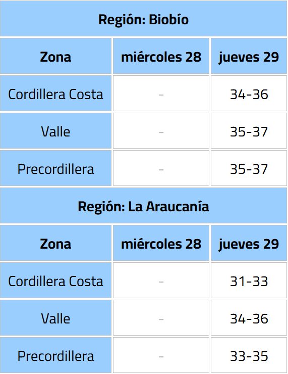 La Dirección Meteorológica de Chile (DMC) emitió una alerta meteorológica por un evento de altas temperaturas extremas, que afectará desde la región del Maule hasta Los Ríos, con máximas que rondarán los 37° C.