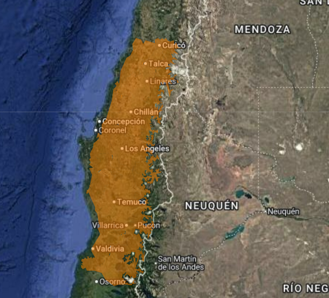 La Araucanía (Cordillera Costa, Valle, Precordillera).