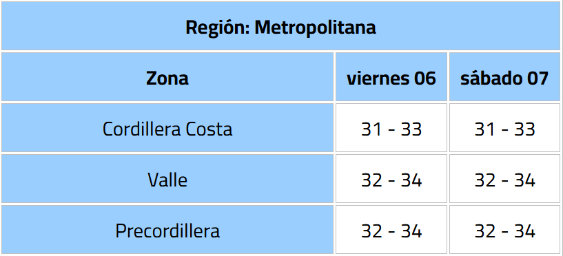 La Dirección Meteorológica de Chile (DMC) emitió un aviso meteorológico por un evento de altas temperaturas, que afectará desde la región de Coquimbo hasta la Metropolitana, con máximas que rondarán los 36° C.