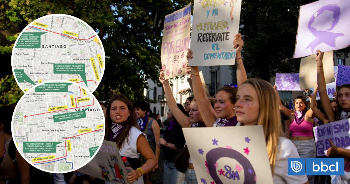 Este domingo 8 de marzo, se aplicarán desvíos de tránsito en Santiago, Recoleta y Providencia debido a la marcha por el Día Internacional de la Mujer convocada por la Coordinadora Feminista 8M. Carabineros informó que las medidas estarán vigentes desde las 8:00 horas, con cortes en la Alameda entre General Velásquez y Metro Salvador, desvíos desde Bellavista hacia General Velásquez y desde Santo Domingo para salir por vías paralelas a la Alameda. El transporte público también tendrá desvíos.