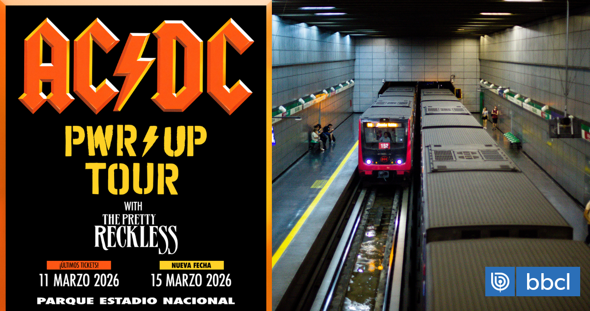 Metro extenderá su horario el miércoles 11 de marzo por el concierto de AC/DC en el Estadio Nacional, con algunas estaciones de las líneas 3, 5 y 6 funcionando hasta la 1:00 del jueves 12. La legendaria banda australiana se presentará después de 30 años con su gira "PWR UP".