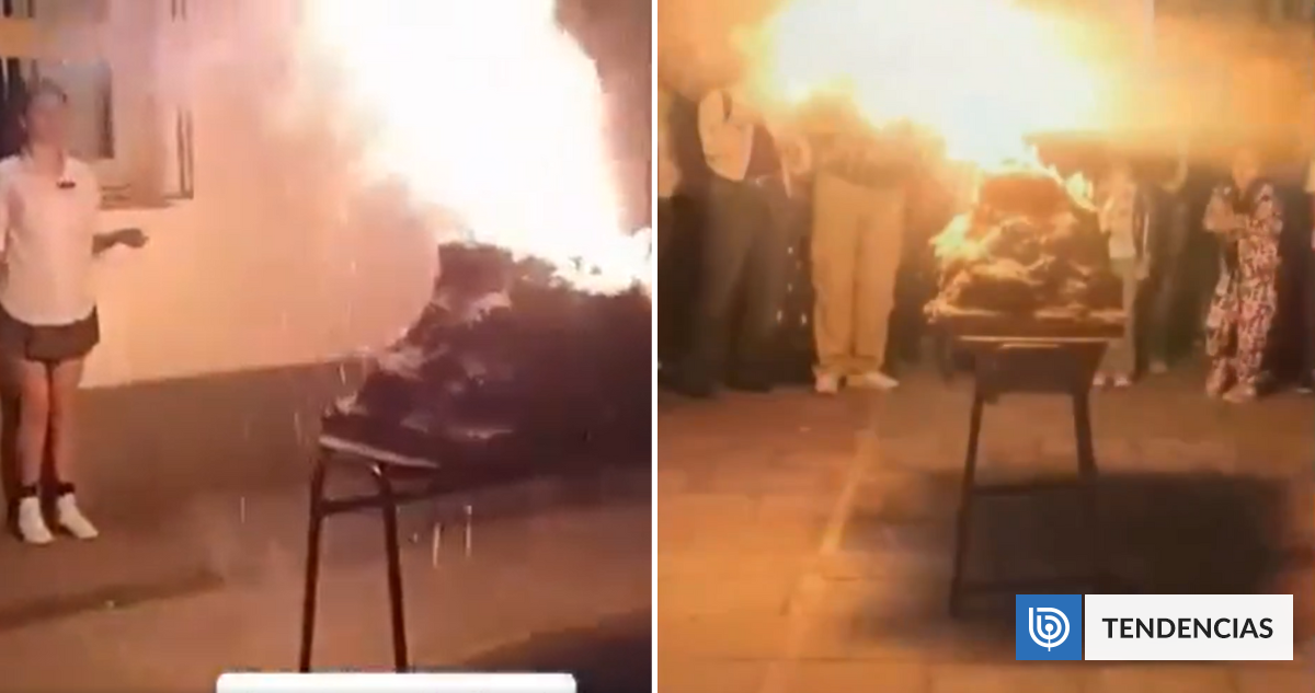 Según muestran las impactantes imágenes, cuando la alumna se acercó para encender el interior del artefacto, las llamas comenzaron a crecer alrededor de la estructura y, segundos después, explotó como una bomba que provocó un fuerte estruendo.
