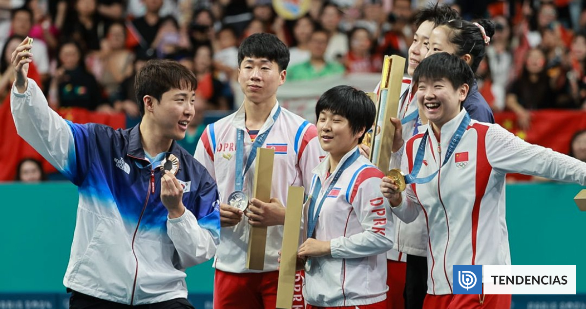 La imagen se dio en medio de la premiación de dobles mixtos del tenis de mesa, cuando la china Sun Yingsha, la ganadora del oro, sugirió a los atletas coreanos inmortalizar el triunfal momento con una fotografía grupal.