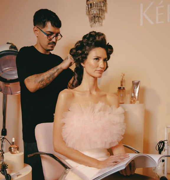 *Julio peinando a una modelo | Instagram